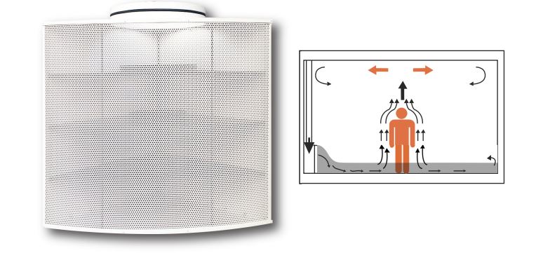 Deplasmanlı havalandırma sistemlerinde ısı yükünü gideren soğuk hava ısınma neticesi densitesi azaldığından yükselmektedir. Bu nedenle egzost havası menfezi yüksek seviyelere yerleştirilir. Bu sayede çok büyük salonların türbülans (girdap) yaratmaksızın ekonomik bir şekilde klimatizasyon klima sistemleri için ideal uygulama ortamlarıdır.
