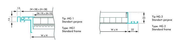 FHG Menteşeli menfez ürünümüz, havalandırma sistemlerinde emiş menfezi ve aynı zamanda fan-coil kontrol kapağı olarak kullanılmaktadır. Özel olarak haddelenmiş 6063 alüminyum profilden mamuldur. Standart kaplama, naturel alüminyum eloksallıdır.